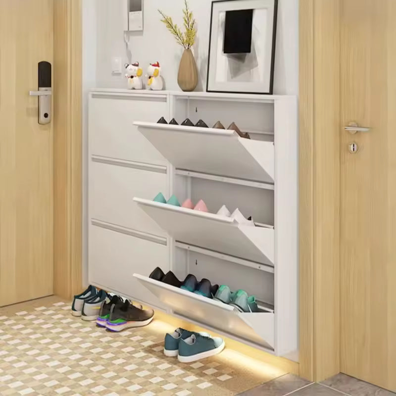 אחסון חכם, עיצוב אלגנטי. הפכו את הכניסה שלכם עם ארון הנעליים, הרמוניה מושלמת של פרקטיות ואסתטיקה מודרנית. ארון הנעליים הדק הזה, שעוצב עבור חללים צרים, דירות קטנות או בתים מינימליסטיים, שומר על הנעליים שלכם מאורגנות בצורה מסודרת מבלי לתפוס שטח רצפה יקר.