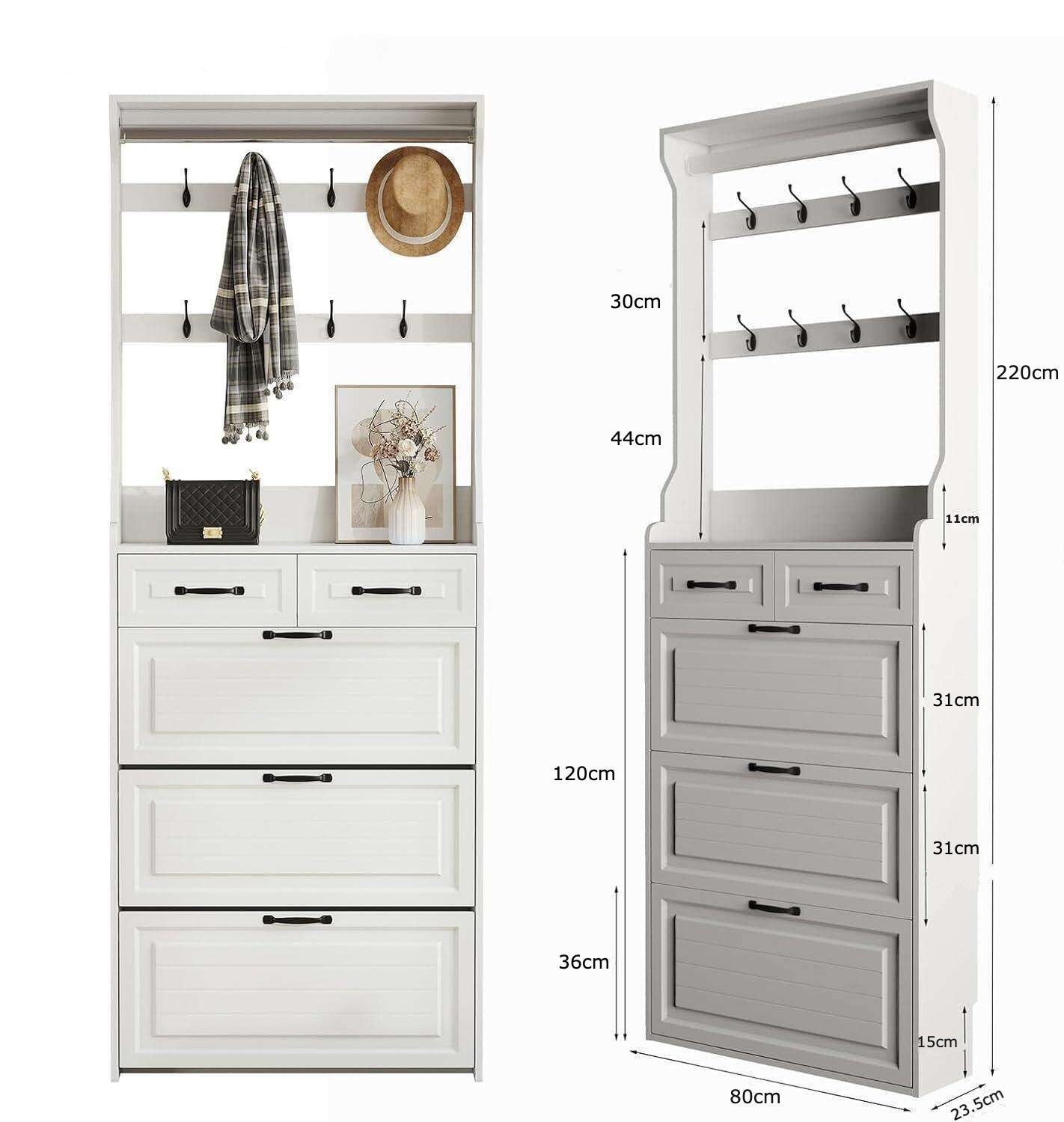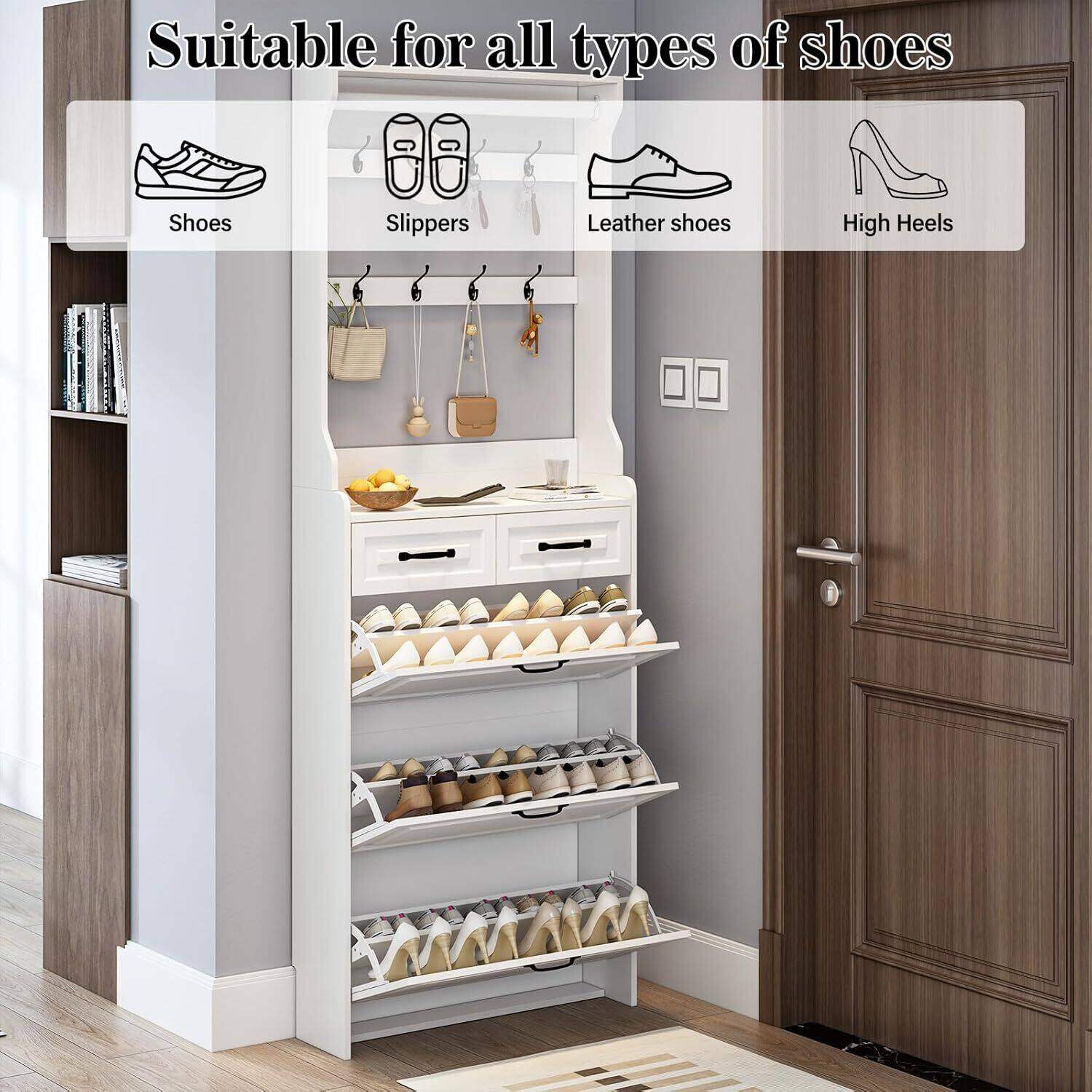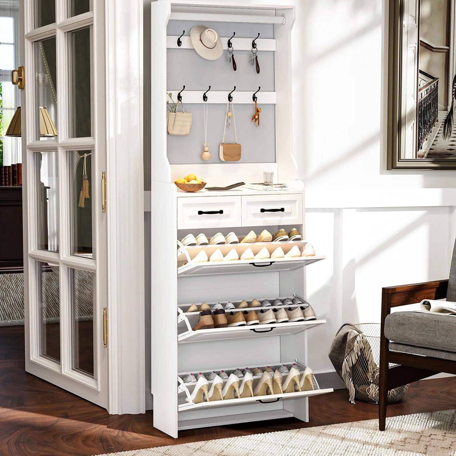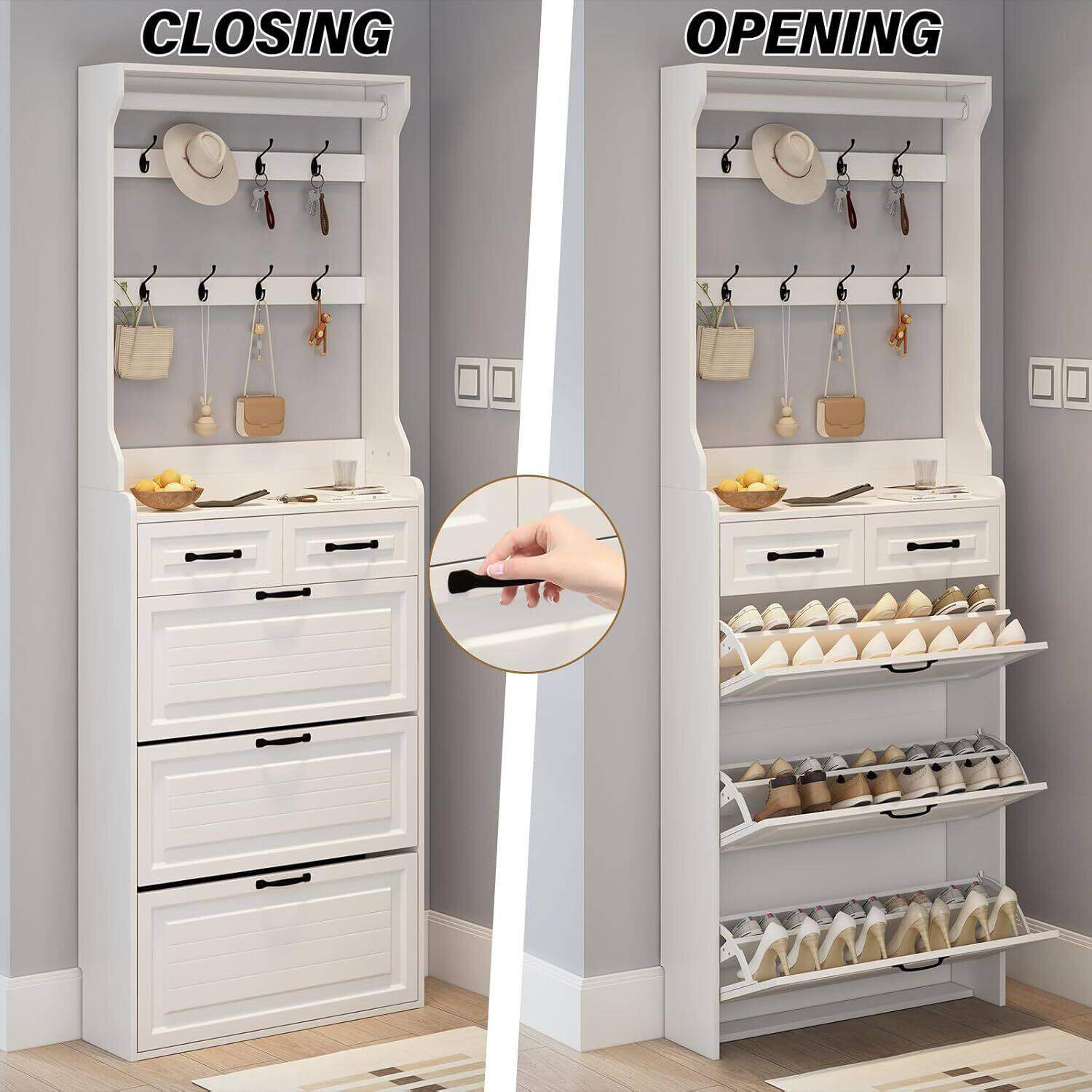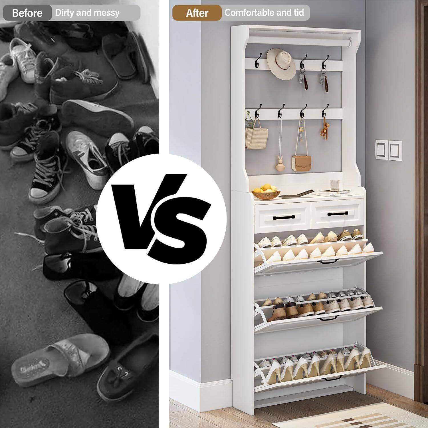 מבצע לזמן מוגבל ⏳ ארון אחסון נעליים גבוה עם 3 מגירות מתקפלות, קולב, דלת, קיבולת גדולה ו-2 מגירות